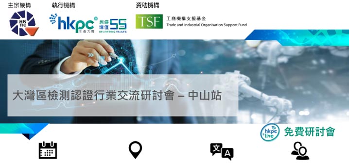 2019年初公佈的《粵港澳大灣區發展規劃綱要》鼓勵及支持大灣區企業使用香港的檢測及認證服務,除了為香港檢測認證行業開拓大灣區市場提供龐大商機外,亦有助促進區內檢測認證業發展及產品品質提升。香港測檢認證協會在「工商機構支援基金」支持下,與香港生產力促進局(生產力局)合作推行「為香港測試及認證業開拓大灣區市場的策略及機會」項目。詳細項目資訊請查詢項目網站(https://gbatesting.hktictsf.org/) 。是次研討會將邀請來自香港及中山檢測認證界的相關部門官員及專家,分享大灣區及中山檢測認證行業的政策、市場、規管及發展趨勢等資訊。